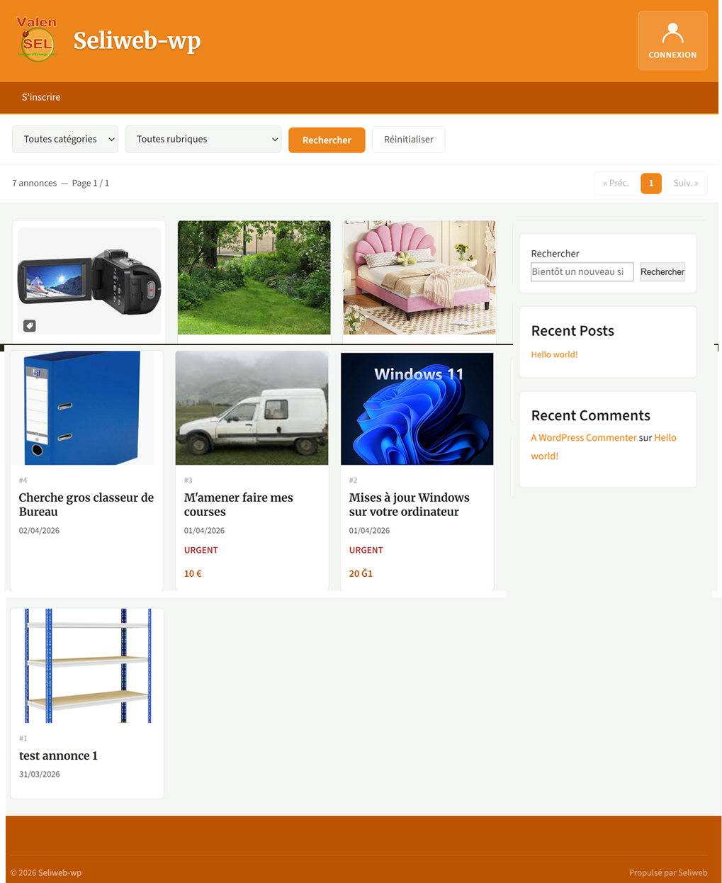 Voici un aperçu de la page d’accueil avec les annonces sur le site de développement et de test. (Page reconstituée par copier/coller)